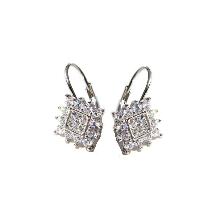 Stříbrné náušnice KOSOČTVEREC s čirými zirkony Rhodium 2,35g