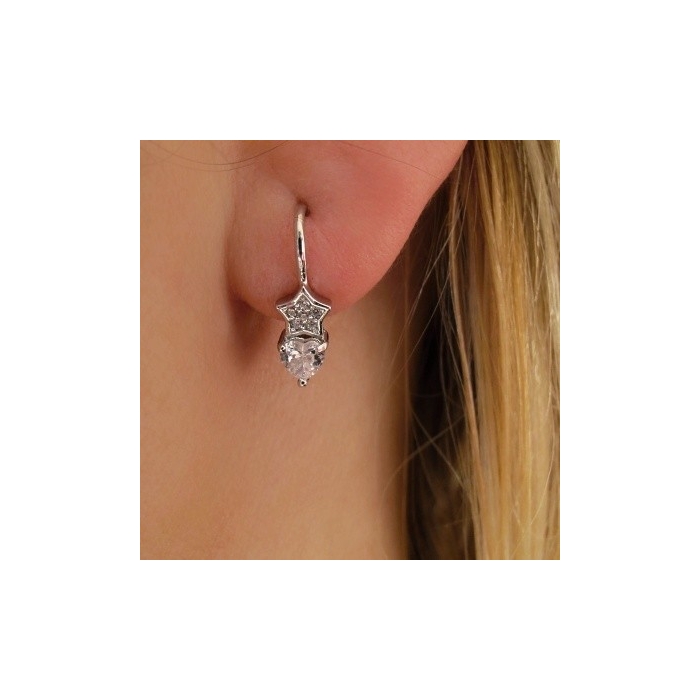 Stříbrné náušnice se zirkony srdíčko s hvězdičkou 16mm Rhodium