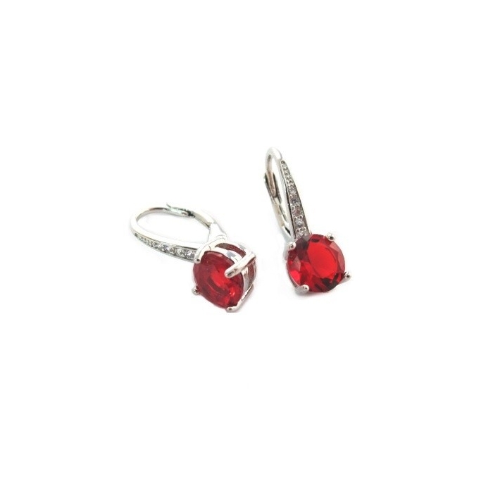 Stříbrné náušnice s červeným zirkonem a čirými zirkony 19mm Rhodium 2,45g