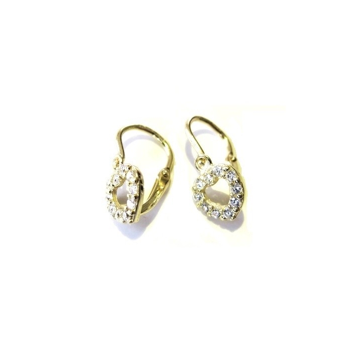 Dětské zlaté náušnice srdíčka s čirými zirkony 1,00g - přední zapínání