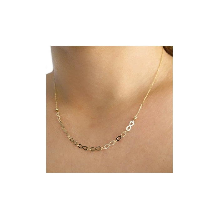 Zlatý dámský náhrdelník s nekonečno a kuličkami 1,45g