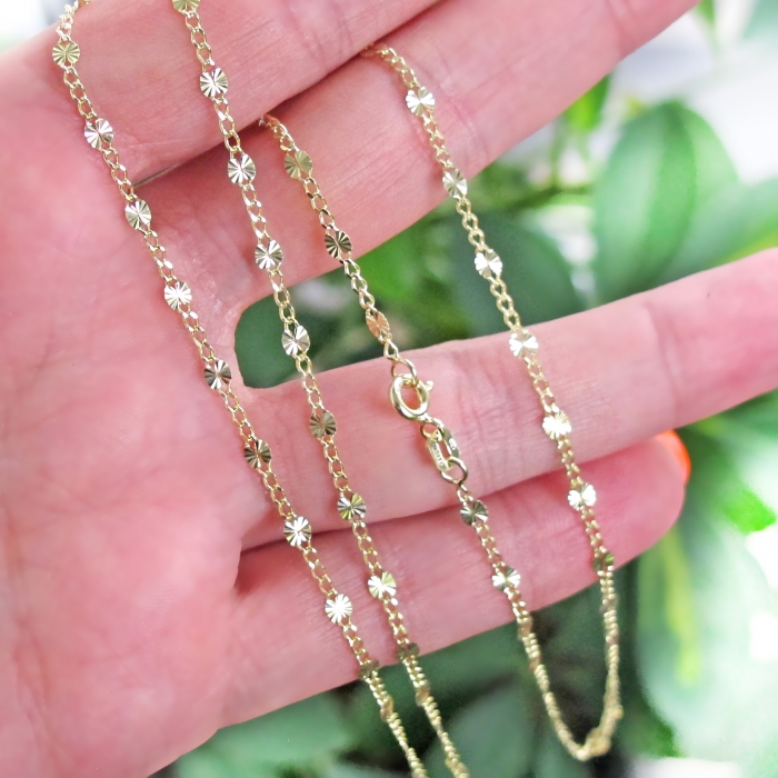 Zlatý řetízek se zdobenými ploškami 3mm 2,55g 50cm